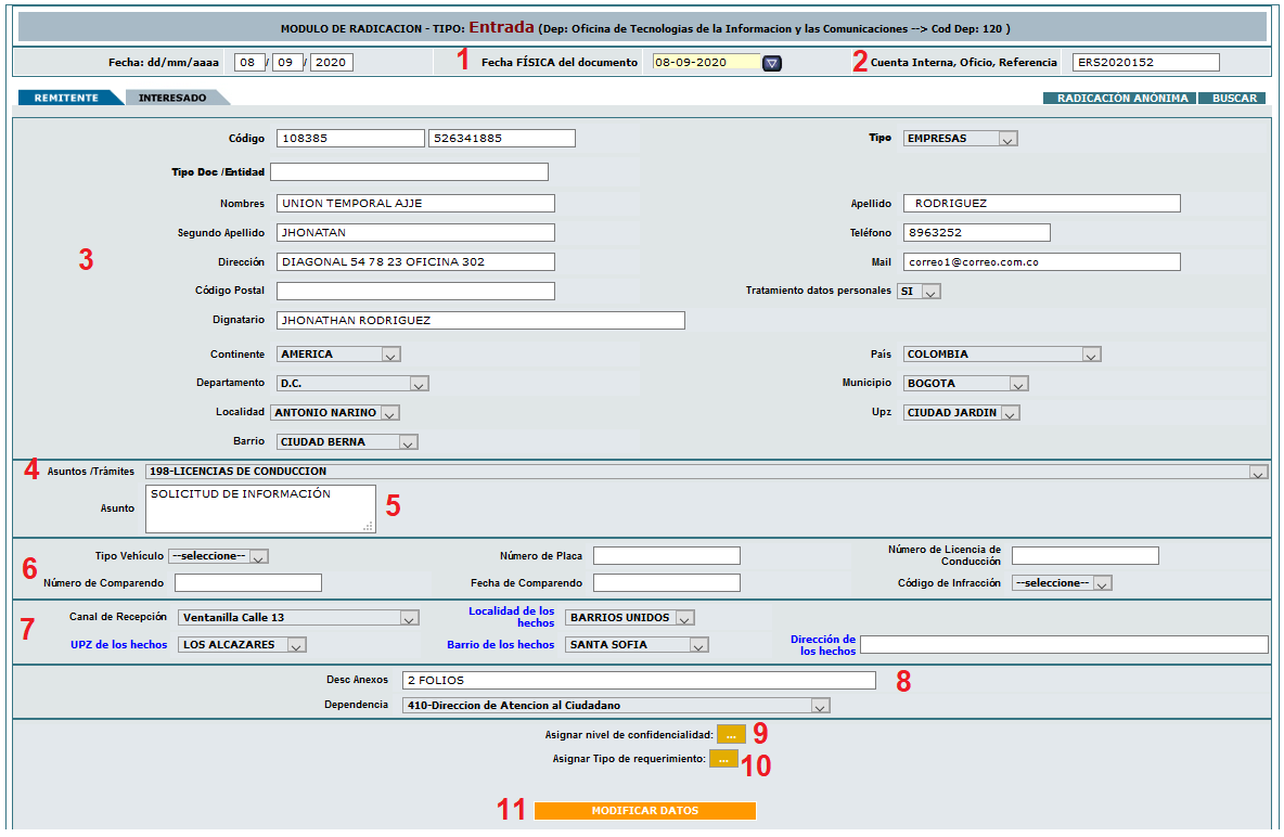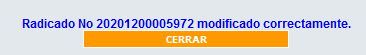 Para realizar modificación de los datos del radicado, digite el numero en el campo