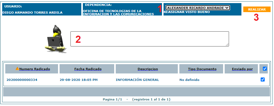 1. En la lista desplegable se mostrará el jefe de la dependencia.