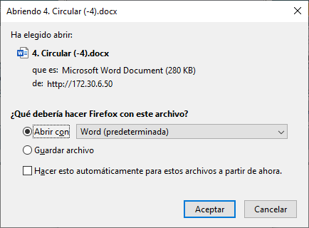 Clic en la opción aceptar y se abrirá un archivo en Word