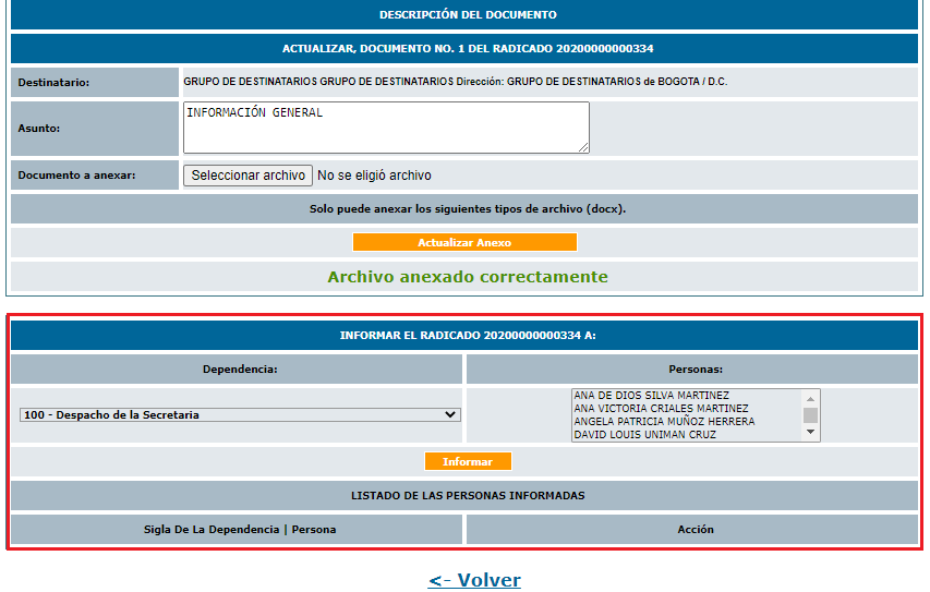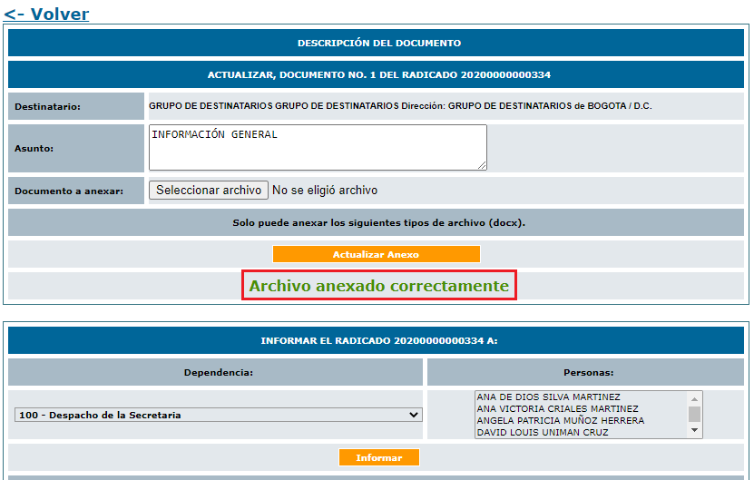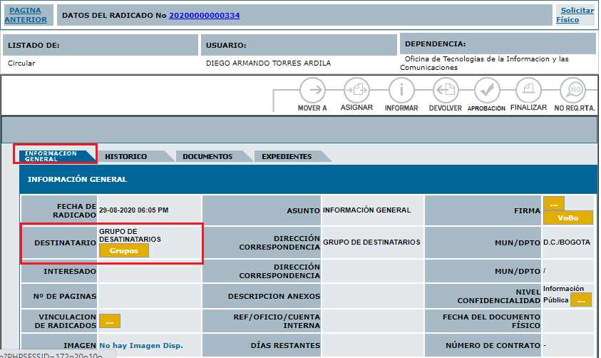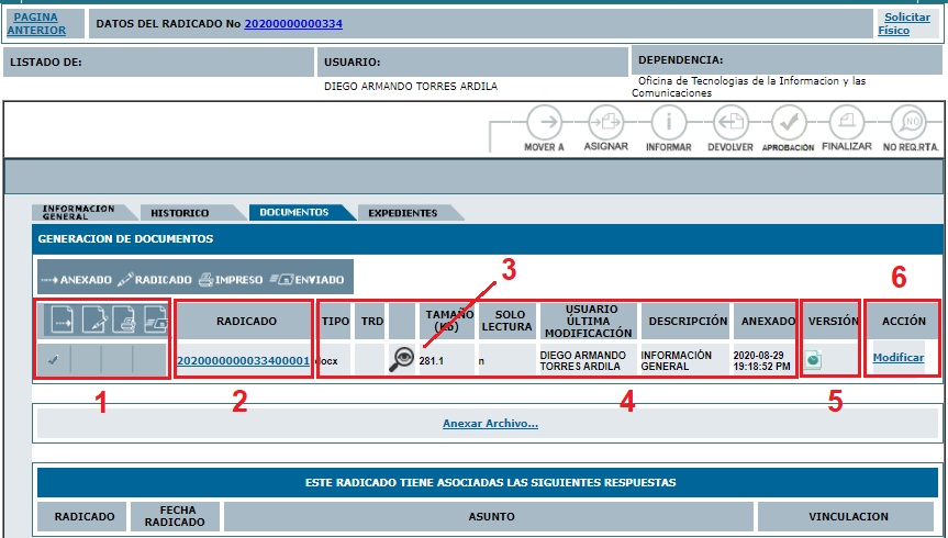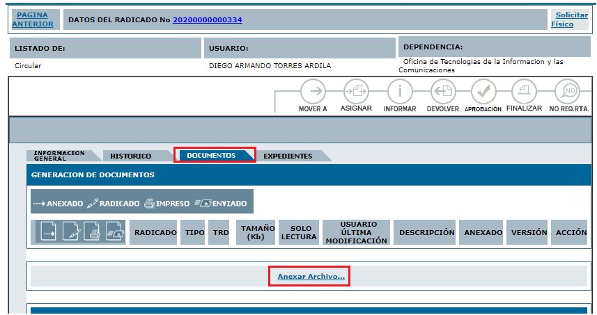 (Recuerde que los informados y anexos, deben ser realizados antes de generar el radicado definitivo, pues después de asignar el radicado definitivo no se puede hacer ningún cambio sobre el documento)