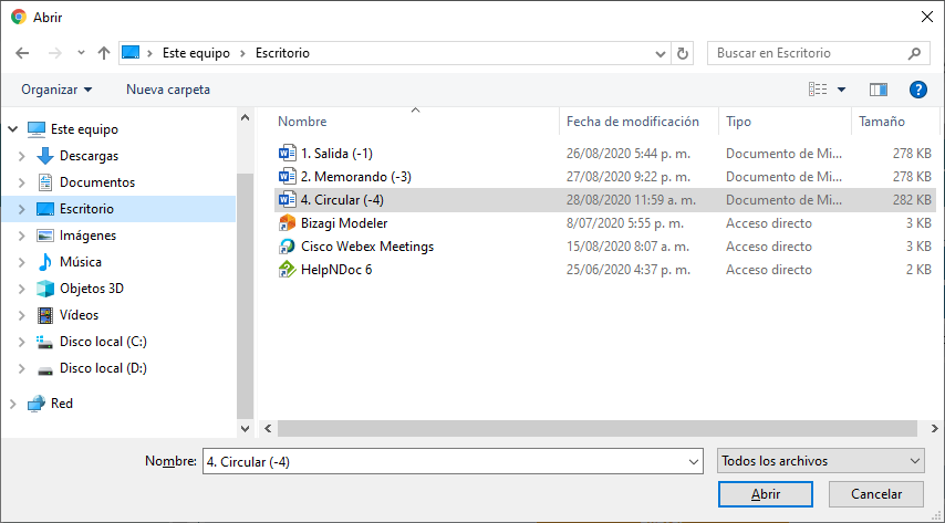 Clic en el botón examinar para buscar el archivo, el sistema mostrará la siguiente vista, ubique la plantilla guardada inicialmente: